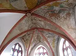 Die 1956 bei Restaurierungsarbeiten im Chorraum entdeckten spätmittelalterliche Decken- und Wandmalereien zeigen über dem Chorbogen Szenen aus dem Leben des heiligen Martin von Tours, des Kirchenpatrons, sowie die symbolische Darstellung des Schenkungsaktes Simons von Saarbrücken im Jahr 1223. Das Chorgewölbe zeigt das Jüngste Gericht, die Leidenswerkzeuge Christi, zwei Evangelistensymbole und die Kirchenväter Hieronymus und Augustinus. Die Darstellung des Jüngsten Gerichts im Chor gilt als die umfangreichste figürliche Gewölbemalerei der Spätgotik im Saarland[3].