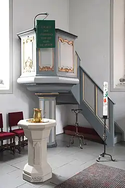 Im Jahr 2010 erhielt die Kirche einen Taufstein, in dessen Sockel ein Abbild des Kirchturms eingearbeitet ist.