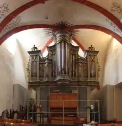 Nach verschiedenen Arbeiten im 19. Jahrhundert wurde die Orgel 1921 von Orgelbauer Heinrich Eichhorn aus Weilmünster vom Chor auf die Westempore umgesetzt. Die Pedalklaviatur wurde 1953/1954 erweitert und ein neues Magazingebläse eingebaut. Bei der Orgelrenovierung in den Jahren 1964–1967, deren Kosten 72.000 DM betrugen, orientierte sich Oberlinger an der ursprünglichen Disposition, baute im Hauptwerk aber einen Pommer 16′ und eine Waldflöte 2′ ein und erhöhte die Chorzahl der gemischten Stimmen. Die seitenspielige Anlage wurde in eine vorderspielige umgebaut und ein zusätzliches Echowerk mit acht Stimmen ergänzt, das die Stumm-Orgel in Mühlheim an der Eis (1738) zum Vorbild nahm. Seit dem Umbau weist die Orgel folgende Disposition auf:[22]