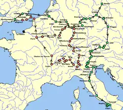 Das Trio reiste zunächst nach Paris. Percy Shelley hatte damit gerechnet, dass ihn dort eine Geldanweisung seines Verlegers Thomas Hookham erwarten würde. Dieser hatte ihm jedoch nur einen Brief geschrieben, in dem er ihn für sein unverantwortliches Verhalten tadelte. Damit die 60 Pfund, die das Trio noch hatte, bis zu ihrem Reiseziel Schweiz reichen würden, reisten sie zu Fuß weiter. Ein Esel und später ein Maultier trugen ihr Gepäck.[31] „Es war wie in einem Roman, wie eine gelebte Romanze“,[32] erinnerte sich Mary Shelley im Jahre 1826 an ihre Reise durch das kriegsgezeichnete Frankreich. Unterwegs lasen sie einander Mary Wollstonecrafts Schriften vor und führten gemeinsam Tagebuch.[33] In Luzern zwang sie schließlich Geldmangel, ihre Reise abzubrechen. Am 13. September 1814 trafen sie wieder in England ein.