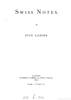 - Swiss notes, by five ladies. Inchbold & Beck, Leeds 1875 (google.com).