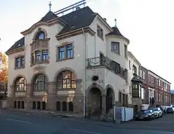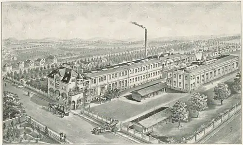 Ein Mittelrisalit, der in das Dach hineinreicht, dominiert die dreiachsige Villa, die 1904/05 vom Architekten Friedrich Haußer im Stil des Historismus errichtet wurde. Ein bereits 1890 errichtetes, weiteres Wohngebäude rundet mit einer 1922 erstellten, frei stehenden Montagehalle das Ensemble ab.