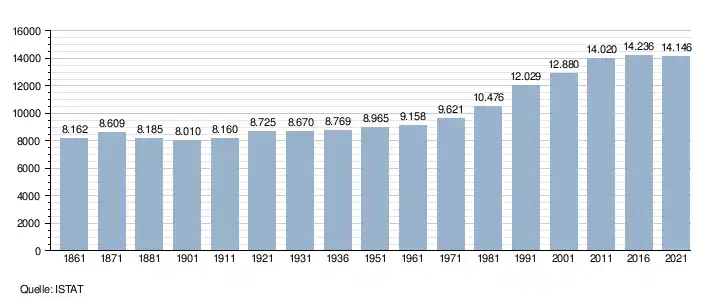 - ↑ Bilancio demografico e popolazione residente per sesso al 31 dicembre 2024. ISTAT. (Bevölkerungsstatistiken des Istituto Nazionale di Statistica, Stand 31. Dezember 2024).