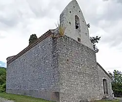 Die erste Kirche wurde im Jahre 1072 an die Abtei Saint-Pierre in Moissac geschenkt. Der älteste Teil der heutigen Kirche ist die Apsis, die aus der Mitte des 12. Jahrhunderts datiert. Ihre schmalen Fensteröffnungen sind bis auf eine Ausnahme im Laufe der Zeit zugemauert worden. Das Langhaus hat eine um sechs Steinreihen geringere Gebäudehöhe als die Apsis und ist zu einem etwas späteren Zeitpunkt erbaut worden. Im 18. Jahrhundert wurde die südliche Wand des Langhauses ausgebessert und eine Sakristei und eine Vorhalle südlich an das Langhaus angebaut. Der dreieckige Glockengiebel mit einer Bogenöffnung dürfte zur gleichen Zeit errichtet worden sein.