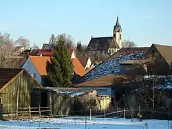 Die evangelische Georgskirche wurde 1912 im Jugendstil vom Architekten Martin Elsaesser an der Stelle einer älteren, vielfach umgebauten Kirche erbaut, wobei Teile der alten Kirche beibehalten wurde. Im Innen- und Außenbereich haben sich historische Epitaphe der Herren von Massenbach erhalten.