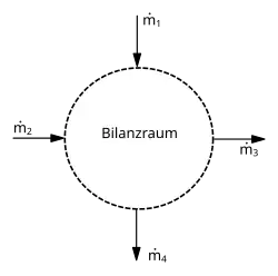 Gibt es mehrere ein- oder austretende Massenströme, wird die Massenbilanz verallgemeinert und die Summe der Massenströme betrachtet.
