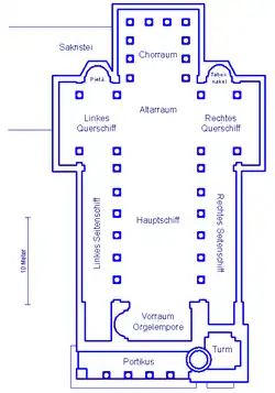 Nach den Plänen des Architekten Raimund Szafranski wurde 1983 und 1984 die alte Form der Kreuzbasilika weitgehend wiederhergestellt.
