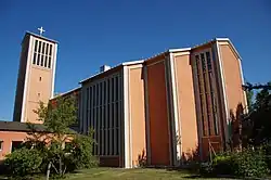 Die denkmalgeschützte katholische Pfarrkirche Mater Dolorosa mit der Adresse Hoher-Kreuz-Weg 9 steht im Ostenviertel von Regensburg.