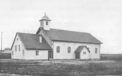 Ursprünglich war von der Pfarrei St. Anton eine steinerne Notkirche am Hohen Kreuz errichtet worden. Das Gebäude wurde am 13. Oktober 1929 auf St. Judas Thaddäus benediziert und eine Nebenkirche von St. Cäcilia. Die Kirche erhielt am 20. Dezember 1944 (wohl wegen der Nähe zum Regensburger Hafen) einen Bombentreffer und wurde stark beschädigt. Noch während einer provisorischen Reparatur wurde sie am 16. April 1945 wiederum von Fliegerbomben getroffen und vollkommen zerstört. Die Gottesdienste wurden vorübergehend in einem nahegelegenen Stadel der Brauerei Bischofshof abgehalten.[1]