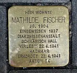 Der Name von Mathilde Fischer ist auch in der Opferdatenbank und im Gedenkbuch der Gedenkstätte Hadamar verzeichnet.