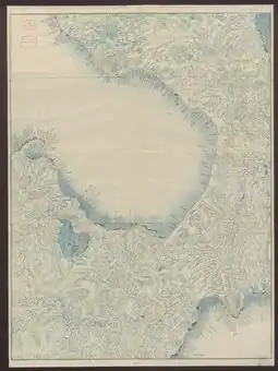 Teil der Hokkaidō-Landkarte (1859) von Matsuura Takashirō, Uchiura-Bucht (oben ist Süden)