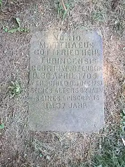 - ↑ Matthaeus Hehl, Inventory of the archives of the Bethlehem congregation, Feb. 1757, mss., BethCong 536, Moravian Archives, Bethlehem.