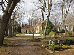 Auf ihm steht ein anspruchsvoll gestaltetes Kapellengebäude, weitestgehend original erhalten, der Friedhof ist also ein Ensemble von stadtgeschichtlicher, baukünstlerischer und gartenkünstlerischer Bedeutung. Ortsgeschichtlich bzw. künstlerisch bedeutsame Bestandteile des Friedhofes sind die zwischen 1892 und 1944 entstandenen denkmalgeschützten Gräber, das um 1900 gefertigte Grabkreuz neben dem Eingang, die 1911 erbaute Friedhofskapelle, das 1921 errichtete Kriegerdenkmal und der um 1930 gefertigte Brunnen.
