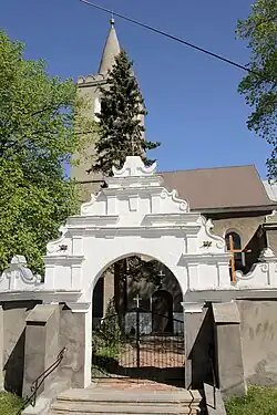 Umgeben ist der Kirchenbau von einer Mauer mit einer Attika mit S-förmigen Aufsätzen. Die Mauer stammt aus dem Jahr 1602. An der Südseite befindet sich ein Tor mit einem reichverzierten Giebel.
