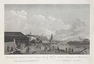 So um das Jahr 1797 herum war Eichler in Herisau und arbeitete dort für den Kaufmann und Kunsthändler Johann (Jean) Walser zusammen mit anderen Stechern und Radierern an den sogenannten Russischen Prospekten, deren wesentlicher Teil 12 Ansichten von Moskau waren. Als Vorlage für diese Arbeiten dienten Bilder des französischen Malers Gérard de la Barthe (1730–1810), der von 1787 an bis zu seinem Lebensende nur noch in Russland gearbeitet hat. — Danach war Eichler wieder in Bern und hat dort unter anderem eine Reihe von farbigen Stichen mit Berner Amtstrachten nach Bildern des Malers Sigmund Freudenberger (1745–1801) geschaffen.