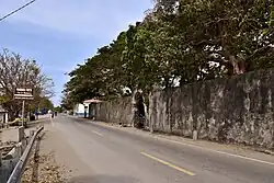 Das rechteckige Fort Maubara, auf dessen Mauer noch zwei Kanonen stehen, ist das markanteste Bauwerk des Ortes und befindet sich an der gut ausgebauten Durchgangsstraße. Gegenüber steht das ebenfalls sehenswerte Alte Zollhaus, das in den 1920er Jahren erbaut wurde und heute ein Geschäftshaus ist.[11] Hinter der Festung wurde um das Grabmonument von Liurai (traditioneller Herrscher) José Nunes (1876–1952) eine kleine Parkanlage angelegt. Etwas bergauf führt von hier eine Straße in den Ortskern mit seinen schnurgerade angelegten Straßen, wo sich in der Nähe der Gemeindeverwaltung das Gesundheitszentrum und der Marktplatz mit der kleinen Markthalle befinden. Die katholische Kirche wurde während der Amtszeit von Generalvikar und Bischof António Joaquim de Medeiros (1877–1897) im Stil des Neoklassizismus an der Hauptstraße jenseits des Flusses erbaut.[11] Neben ihr steht die frühere Schule Escola Padre Medeiros, die in der zweiten Hälfte des 18. Jahrhunderts erbaut wurde, als Maubara noch eine niederländische Besitzung war. Im 21. Jahrhundert wurde das Gebäude abgetragen und in etwas modernisierter Form neu errichtet.[11] Es dient heute dem Bischof von Maliana als Residenz, wenn er sich in Maubara aufhält.