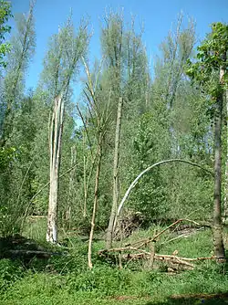 Bereits kurz vor und während des Zweiten Weltkrieges wurden im Bruch Bäume gepflanzt, und zwar schnell wachsende Pappeln und Erlen im Hinblick auf eine Holzgasgewinnung für Kfz. Die Bepflanzung des Bruchgeländes mit den gleichen Baumarten wurde in den 1950er Jahren fortgesetzt. Als in den trockenen Jahren ab 1970 der Grundwasserspiegel fiel, kam es zu großen Trockenschäden an diesem Baumbestand. Hinzu kam, dass einige Bäume auch ihr biologisches Alter erreicht hatten.