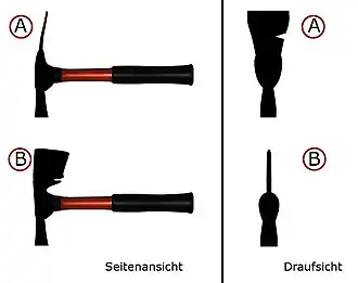 Sehr ähnlich, aber schlichter, ist der Schürfhammer der Geologen, der nicht zum Nägelziehen konzipiert ist.