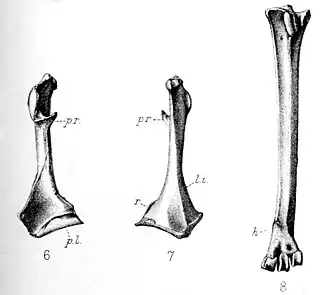 Zeichnung von subfossilen Knochen des Mauritius-Nachtreihers | ||||||||||