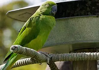 Weibchen des Mauritiussittichs in der Zuchtstation | ||||||||||||