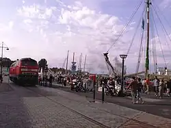 - ↑ Holger Ohlsen: Die Hafenbahn wird abgehängt. In: Flensburger Tageblatt. sh:z das Medienhaus, 22. Juli 2015, abgerufen am 28. Februar 2016.