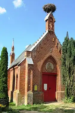 Das als Erbbegräbnis errichtete Gebäude, westlich der nahegelegenen Schlosskapelle, wurde im neogotischen Stil erbaut. Es umfasst eine Größe von sechs mal sieben Meter. Die Mauern wurden aus roten Ziegeln im Blockverband errichtet. In die Seitenwände sind jeweils zwei spitzbogige Bleiglasfenster eingelassen, unter der Traufe sind die Wände mit einem Konsolfries geschmückt. Die spitzgieblige Vorderfront zeigt nach Osten, das spitzbogige Portal ist durch die Holztür und ein Tympanon mit Christusrelief gegliedert. Die Westfront ist schmucklos und nur im Giebelbereich durch ein spitzbogiges Fenster unterbrochen. An allen vier Seiten befinden sich je zwei Strebepfeiler, die rechtwinklig zueinander stehen. Das Gebäude wird durch ein Satteldach abgeschlossen, das mit Kupfer gedeckt ist. Die Decke im Innenraum ist als Stichkappengewölbe ausgeführt, das in der Mitte zu einem Okulus zusammenläuft. Sie ist wie die Seitenwände weiß getüncht. Historisches Inventar ist nicht mehr vorhanden.