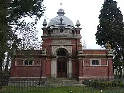 Das Mausoleum wurde als neobarocker Backsteinbau mit Architekturelementen aus Sandstein errichtet. Die Seitenteile treten leicht hervor. Lisenen mit Dreiviertelstäben an den Kanten gliedern den Baukörper. An der Rückseite befindet sich eine leicht hervortretende Apsis ohne Fenster. Der überhöhte quadratische Mittelteil des eingeschossigen Baukörpers wird von einer Kuppel gekrönt. Vier Obelisken auf Sockeln umgeben diese Kuppel.