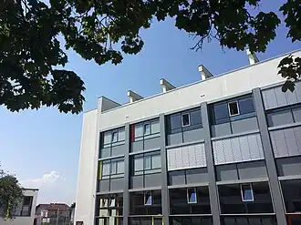 Heute verfügt die Schule über sechs Gebäude (Altbau, Hochbau, Langbau, Neubau, Pavillon und Turnhalle).[4] Bis 2015 wurde der Pausenhof saniert.