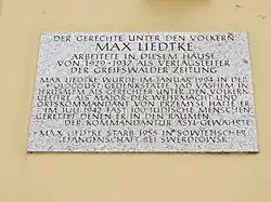 Max Liedtke (* 25. Dezember 1894 in Preußisch-Holland,[1] Ostpreußen; † 1955 bei Swerdlowsk) war ein deutscher Offizier der Wehrmacht und Journalist. 1993 wurde er als Gerechter unter den Völkern in der Holocaust-Gedenkstätte Yad Vashem in Jerusalem ausgezeichnet.