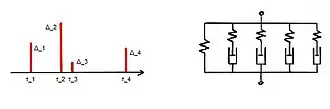 Um das anelastische Verhalten der Materialien zu beschreiben, kann man Antwortfunktionen oder Relaxationsspektren benutzen. Insbesondere für die Auswertung der Relaxationszeit und der Relaxationsstärke eignen sich Spektren besser, da hier in den rein elastischen Anteil und in den anelastischen Anteil unterschieden wird. Bei den Antwortfunktionen müssten diese Anteile mühsam herausgerechnet werden. Die anelastische Relaxation beruht oftmals auf der thermischen Aktivierung.[7] Daher kann die Materialdämpfung auch als Funktion der Temperatur dargestellt werden: