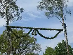 Am Freitag vor Pfingsten sammelt die Dorfjugend Eichenlaub und bindet daraus eine Girlande. In diese hängen sie eine Laubkrone, an die eine geleerte Kornflasche gebunden wird. Parallel dazu werden die Pfingtbäume (junge Birken) geschlagen.
