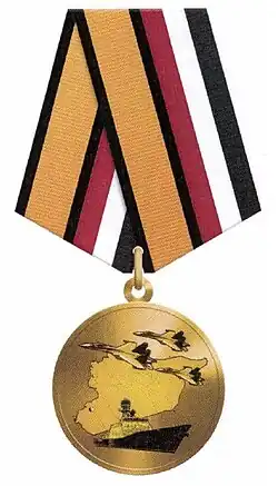 Grundsätzlich kann die Medaille über diesen Personenkreis hinaus auch an sonstige russische und ausländische Staatsbürger verliehen werden, die sich um den Erfolg der Operation der Russischen Streitkräfte in Syrien verdient gemacht haben.