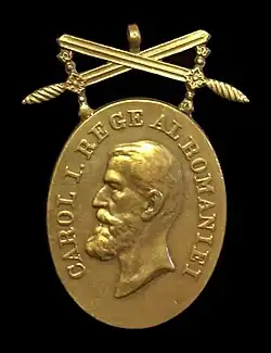 Die Auszeichnung ist eine aus Bronze gefertigte hochovale Medaille. In der I. Klasse ist sie vergoldet, die II. Klasse ist versilbert. Sie zeigt das nach recht blickende Brustbild des Stifters mit der Umschrift CAROL I. REGE AL ROMANIEI (Carol I. König von Rumänien). Im Revers die dreizeilige Inschrift Bărbăţie şi Credinţă (Männlichkeit und Treue), die links unten von einem Lorbeerzweig eingerahmt und an dessen Ende wiederum ein Band geknotet ist.