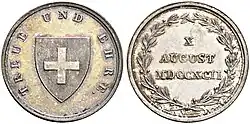 - ↑ F. Haas: Die Medaillen über das Ereignis des 10. August 1792, aus: „Schweizerische numismatische Rundschau“, Band 3 (1893), doi:10.5169/seals-171901