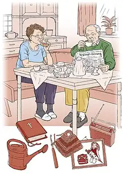 Bei den Häuslichen sind die Frauen etwas in der Überzahl (58 Prozent). Im Durchschnitt ist der Typ 61 Jahre alt. Rund ein Drittel ist zwischen 50 und 59 Jahre alt, mehr als die Hälfte ist über 60. Häusliche verfügen verglichen mit anderen Mitgliedern ihrer Generation über formal niedrige Bildungsabschlüsse. Ein Drittel steht noch im Berufsleben.[7]