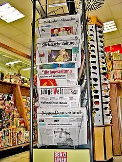 Zeitungsständer mit verschiedenen deutschen Zeitungen