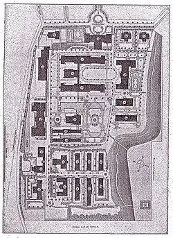 Ab 1907 entstand an der Delbrück-Allee in Danzig-Langfuhr ein kommunales Krankenhaus.[2] Treibende Kraft war Arthur Barth, der seit 1896 die Chirurgie im alten Krankenhaus leitete.[3] Mit zunächst 700 Betten wurde das neue Haus im April 1911 eröffnet. Auf dem 157.572 m² großen Gelände standen 26 Gebäude mit 16 Pavillons. In den ersten Jahren waren Chirurgie und Innere Medizin die wesentlichen Fächer.[4]