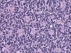Das Medulloblastom ist ein undifferenzierter embryonaler Tumor, der von embryonalen pluripotenten Zellen abstammt. Feingeweblich sind Medulloblastome zelldichte klein- rund- und blauzellige Tumoren. Die Tumorzellen weisen runde bis ovale Kerne auf und können in Rosettenformationen angeordnet sein. Immunhistochemisch ist eine Expression neuronaler Marker (Synaptophysin, Neurofilament, NeuN) typisch aber auch gliale Proteine wie GFAP können kleinflächig exprimiert werden. Als Varianten abzugrenzen sind desmoplastisches Medulloblastom, anaplastisches Medulloblastom, Medulloblastom mit extensiver Nodularität, desmoplastisches noduläres Medulloblastom und Medullomyoblastom