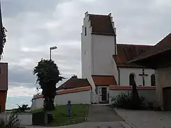 Die von einer Friedhofsmauer umgebene Chorturmkirche mit westlichem Vorzeichen steht am Südrand des Dorfes. Sie stammt aus der Zeit der Romanik; die Reste eines romanischen Eingangs sind zu erkennen. Um 1700 wurde die mittelalterliche Kirche durch umfassenden Umbau barockisiert.[16] Das Hochaltarblatt zeigt die Taufe Jesu durch Johannes. Über dem Chorbogen ist als Holzplastik eine Türkenkopfmadonna des 15. Jahrhunderts angebracht. Die Marienfigur am linken Seitenaltar, stammt vom Ende des 15. Jahrhunderts. Am rechten Seitenaltar steht eine Holzplastik des Kirchenpatrons aus dem 16. Jahrhundert. Der Kirchturm hat einen Treppengiebel mit Satteldach; die beiden Glocken wurden 1950 von Johann Hahn in Landshut gegossen. Eine ältere Glocke stammte von 1751 von Christian Felix in Ingolstadt.[17] Der Sage nach wurden die Glocken des Kirchleins im Dreißigjährigen Krieg im sogenannten Roten Brunnen versenkt, um sie vor der Zerstörung zu retten.[18]