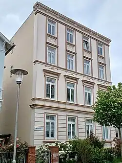 Das viergeschossige traufständige vierachsige verputzte Gebäude mit Pultdach wurde 1898 zweigeschossig gebaut und 1906 aufgestockt. Die einfache Fassade wurde durch ein horizontales geschossteilendes und ein Dachgesims sowie Fensterrahmungen gestaltet und durch florale Motive in den oberen Brüstungszonen. Im Erdgeschoss erhielt sie eine Scheinquaderung.