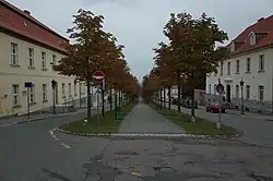 Zwei der anhaltischen Meilensteine stehen unterhalb des Schlossberges am West-Ende der Allee links und rechts des Zuganges und somit an der Ostseite des Schlossplatzes, der dritte nur wenige Meter entfernt im Hof vom Stadtmuseum „Wilhelm von Kügelgen“.
