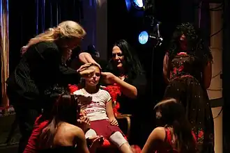- ↑ http://www.experimentaltheater.com/uploads/media/vienna_review04-07.jpg (Seite nicht mehr abrufbar, festgestellt im Mai 2019. Suche in Webarchiven) Info: Der Link wurde automatisch als defekt markiert. Bitte prüfe den Link gemäß Anleitung und entferne dann diesen Hinweis. "Vienna Review zum Projekt Hochzeit"