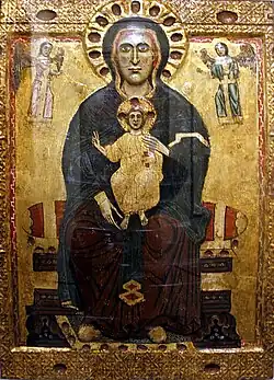 - Madonna dagli occhi grossi (auch Madonna con Bambino in trono e angeli oder Madonna degli Occhi Grossi), Museo dell’opera del Duomo, Siena. Holzgemälde, 97 × 67, entstand zwischen 1225 und 1250.[4]