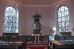 Der Innenraum wird durch eine dreiseitige hölzerne Empore und die mittig angeordnete Kanzel gestaltet. Der Sandsteinaltar stammt von 1904. Die Buntglasfenster wurden 1961 nach einem Entwurf des Pariser Ateliers Pillods gefertigt. In dieser Zeit wurde auch der Taufstein aufgestellt.