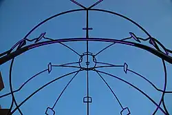 Für die Konstruktion wurden 800 Meter (2,600 inches) quadratisches Stahlrohr (12 cm × 12 cm / 4,7" × 4,7") und 300 Meter (984 inches) LED-Beleuchtung benutzt. Die Struktur zeichnet in der Luft die Umrisslinien des verschwundenen Baues und stellt so in Form einer Skizze das Originalvolumen nach. Bei Nacht betont die Beleuchtung bestimmte Stellen, an denen einst das Licht einschien. Die Gesamtmaße betragen 25 Meter von Osten nach Westen und 15 Meter von Norden nach Süden. Die höchste Spitze ragt 31 Meter in die Höhe, bei einem Gesamtgewicht von 40 Tonnen.[2]