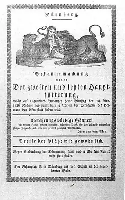 - Annelore Rieke-Müller, Lothar Dittrich: Unterwegs mit wilden Tieren. Wandermenagerien zwischen Belehrung und Kommerz 1750–1850. Basilisken-Presse, Marburg 1999, ISBN 3-925347-52-6