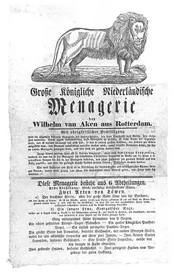1791 gründete der Geflügelhändler Anthonys van Aken (1753–1826) in Rotterdam eine sogenannte stationäre Handelsmenagerie, in der er exotische Tiere sammelte und verkaufte. Sie wurde 1792 und 1793 von Prinz Wilhelm von Oranien aufgesucht, der Menagerien in Den Haag und Apeldoorn besaß. Ab 1796, während der Zeit der napoleonischen Besetzung der Niederlande, reiste van Aken mit seiner Sammlung durch die Niederlande. 1804 ließ er sich als Tierhändler in Amsterdam nieder. In den folgenden Jahren profitierte er davon, dass sich Louis Bonaparte, ab 1806 König von Holland, bis zu seiner Abdankung 1810 nicht an der Kontinentalsperre beteiligte, so dass weiterhin in den niederländischen Häfen exotische Tiere eingeführt werden konnten. Die darin gründenden Handelsbeziehungen erwiesen sich nach 1815 für die Kinder van Akens als vorteilhaft.