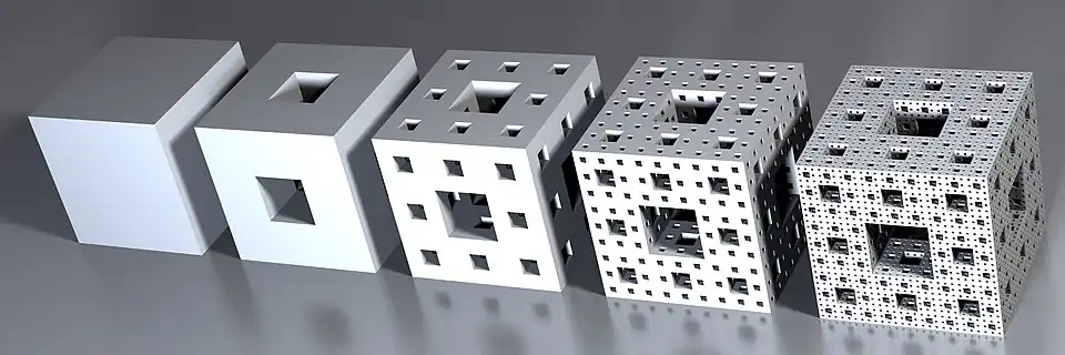 Überträgt man das Konstruktionsprinzip des Sierpinski-Teppichs auf einen Würfel, erhält man ein Gebilde, das einem Schwamm ähnelt.
