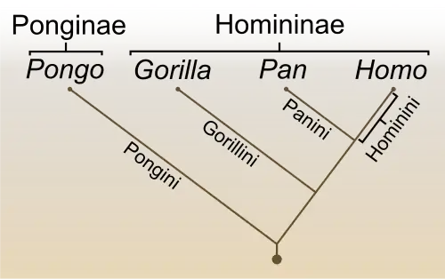 Bis in die späten 1980er-Jahre wurden die Orang-Utans, Gorillas und Schimpansen in der Familie der Menschenaffen (Pongidae) zusammengefasst und der Familie der Echten Menschen (Hominidae) gegenübergestellt. Genetische Vergleiche zeigten, dass Schimpansen und Gorillas näher mit dem Menschen verwandt sind als mit den Orang-Utans; seitdem werden Menschen, Schimpansen und Gorillas nebst all ihren fossilen Vorfahren zur Unterfamilie Homininae und diese neben das Taxon Ponginae der Orang-Utans gestellt.