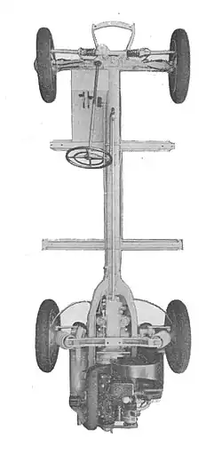 Hinten war eine Pendelachse mit Schraubenfedern eingebaut. Die Vorderräder hingen achslos an zwei Querblattfedern (Einzelradaufhängung).[1] Die Lenkung arbeitete mit Ritzel und Zahnstange.